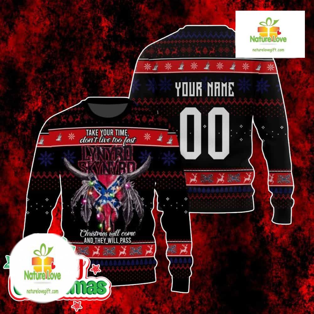 Lynyrd Skynyrd Ugly Christmas Sweater Custom Holiday Gift Jumper details: