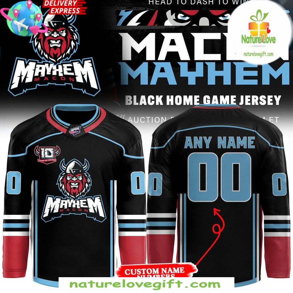 Order your Macon Mayhem 2025 Home Hockey Jersey Game Day at Nature Love Gift! ❤️