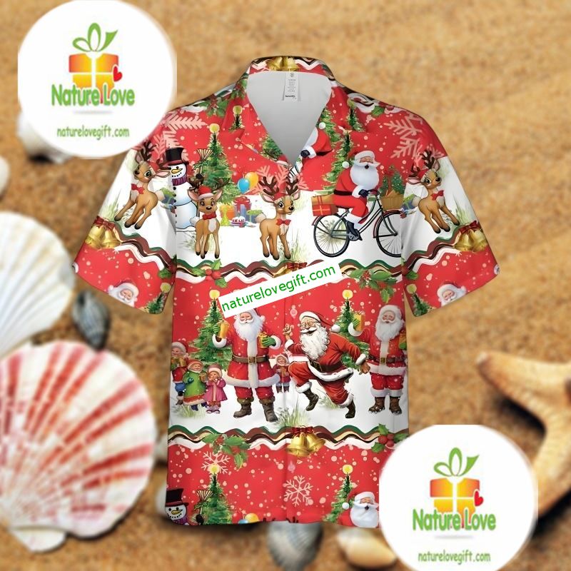 Merry Christmas Santa Claus And Reindeer Red Printed Hawaiian Shirts