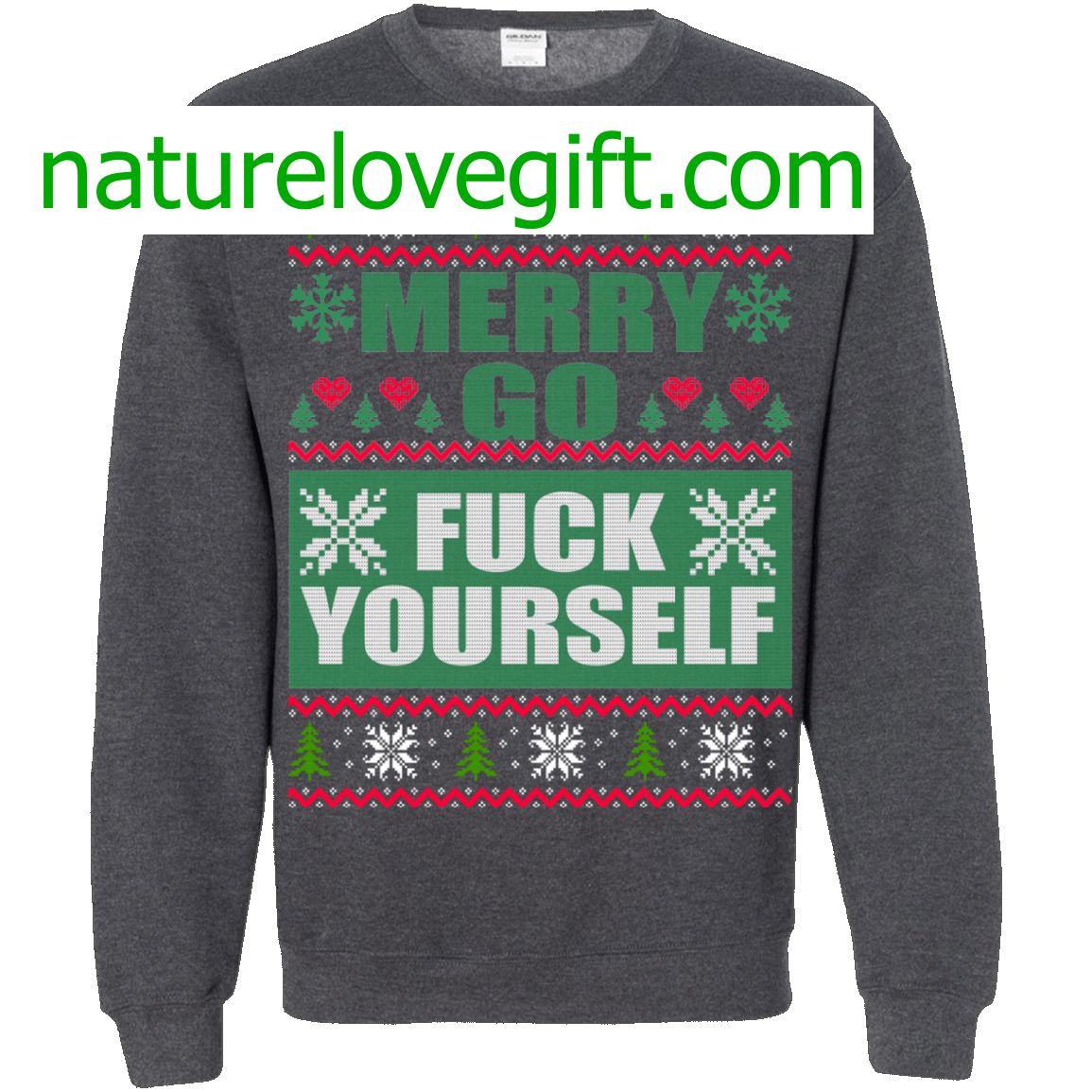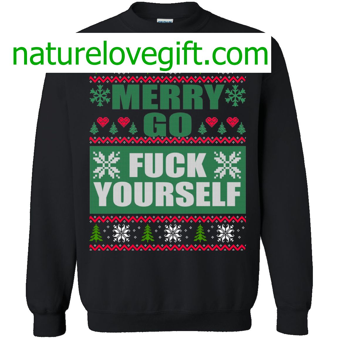 Get ready to add a dash of irreverent humor to your holiday wardrobe with the Merry Go F-ck Yourself Christmas Sweater. This cheeky design, perfect for those who appreciate a blend of witty and bold style, features vibrant graphics that are sure to spark laughter and conversation at any festive gathering.Crafted for comfort, this cozy sweater is an ideal choice for those chilly winter nights, whether you’re lounging by the fire or attending a holiday party. The playful message invites you to embrace your unique spirit, making it a standout piece in any casual holiday celebration.Pair it with your favorite jeans or festive leggings for a fun twist on traditional Christmas attire. Perfect as a gift for the friend who loves to keep things light-hearted, this sweater is your go-to for making a memorable impression. Don’t just blend in this season—wear your attitude!