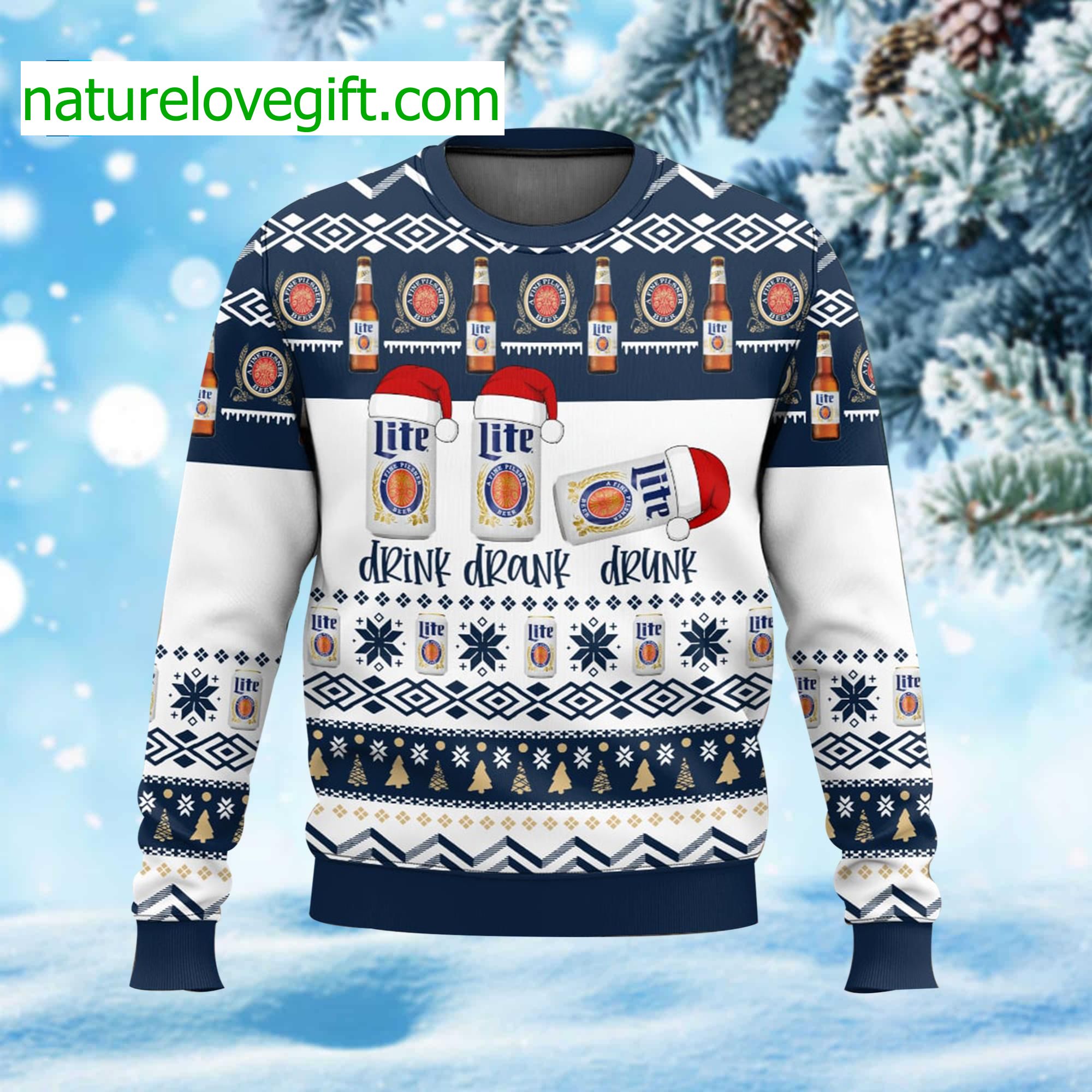 Miller Lite Drink Drank Drunk Ugly Christmas Sweater details:
