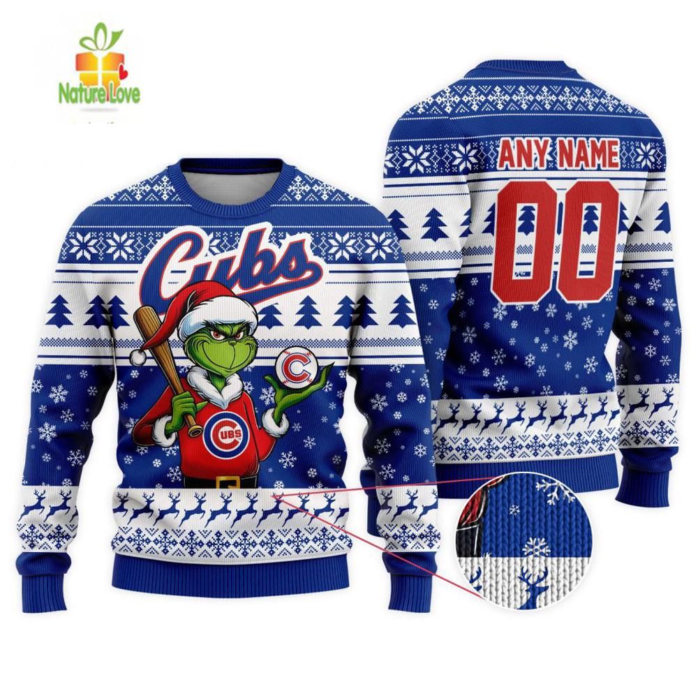 MLB Chicago Cubs Grinch Christmas Ugly Sweater details: