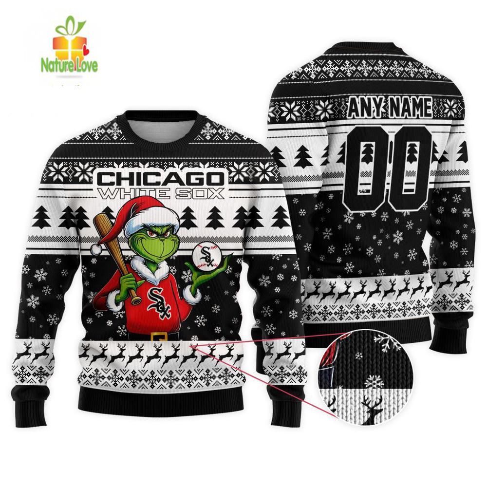 MLB Chicago White Sox Grinch Christmas Ugly Sweater details: