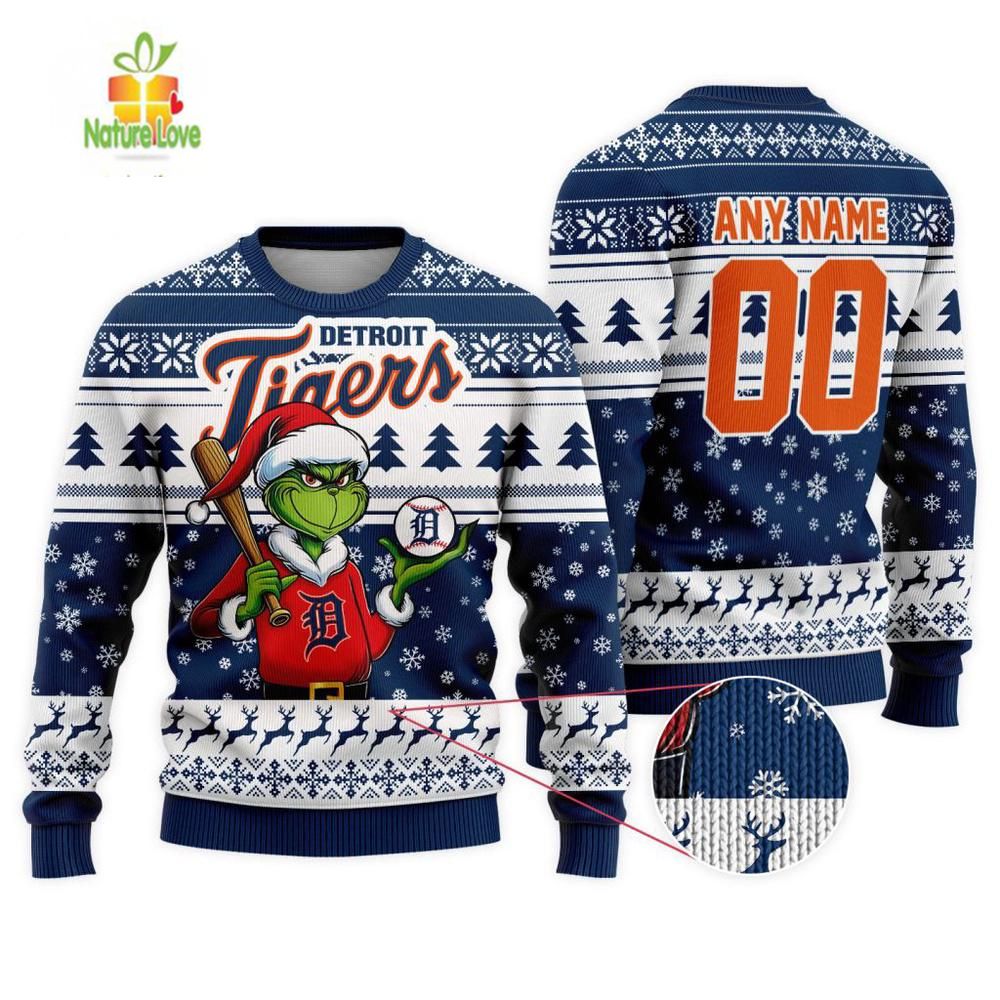 MLB Detroit Tigers Grinch Christmas Ugly Sweater details: