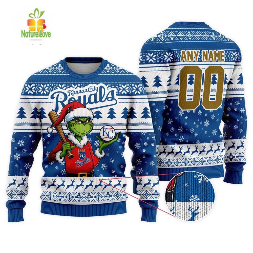 MLB Kansas City Royals Grinch Christmas Ugly Sweater details: