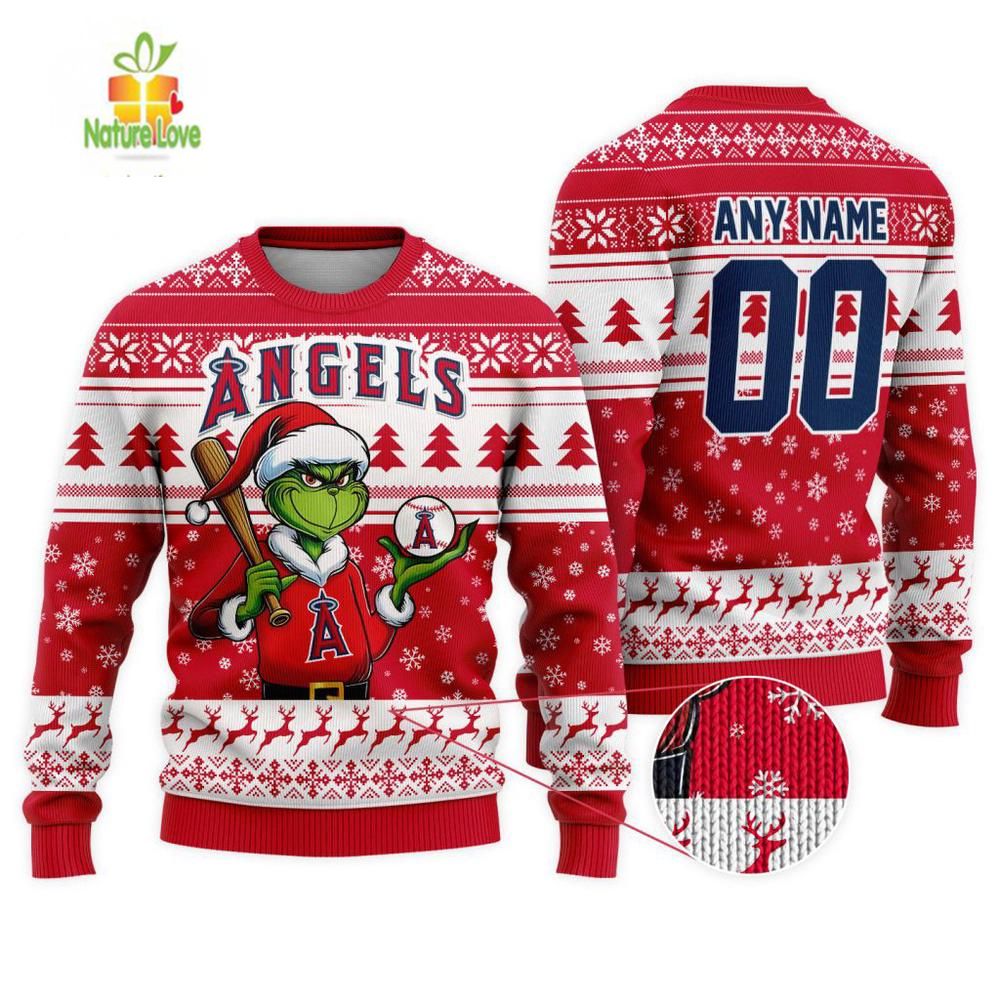 MLB Los Angeles Angels Grinch Christmas Ugly Sweater details: