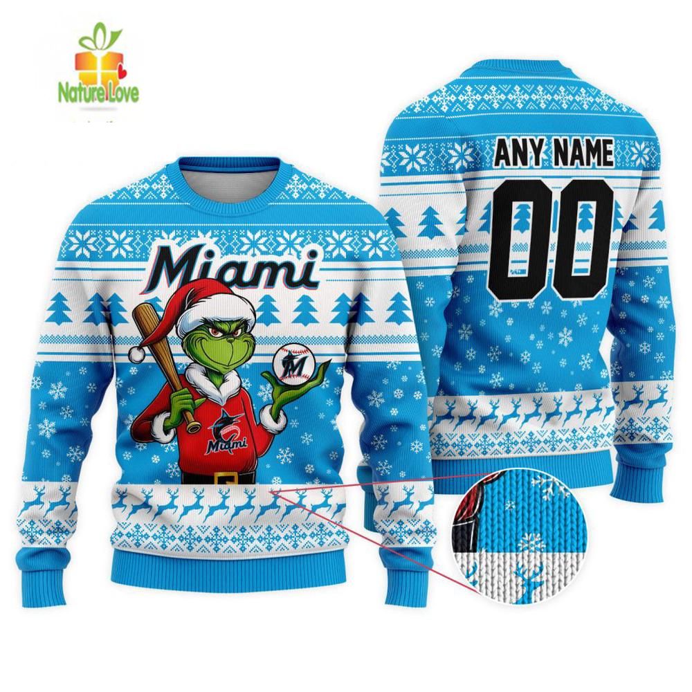MLB Miami Marlins Grinch Christmas Ugly Sweater details: