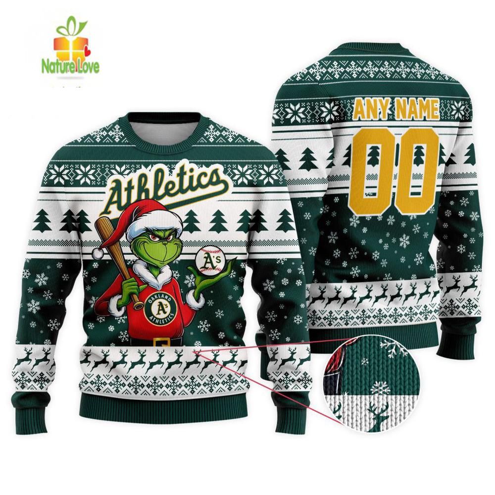 MLB Oakland Athletics Grinch Christmas Ugly Sweater details: