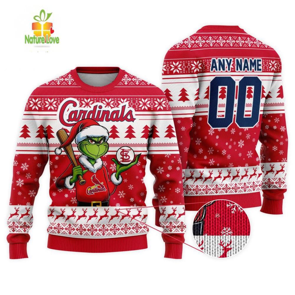 MLB St. Louis Cardinals Grinch Christmas Ugly Sweater details: