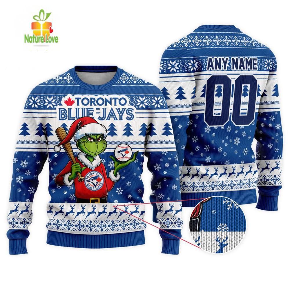 MLB Toronto Blue Jays Grinch Christmas Ugly Sweater details: