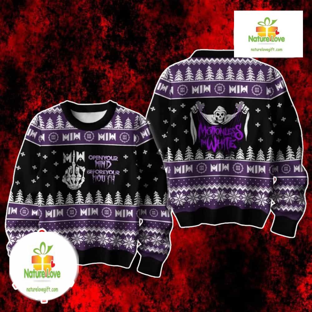 Step into the season of cheer and darkness with the Motionless In White Ugly Christmas Sweater. This striking gothic holiday knit offers a perfect blend of festive spirit and edgy style, making it an ideal choice for those who celebrate the unconventional. Adorned with intricate designs that evoke a sense of mystery, this sweater is not just clothing; it’s a statement piece for the bold.Imagine cozying up at a holiday gathering, sipping hot cocoa while your friends admire your unique flair. The soft fabric ensures warmth during chilly nights, and its vintage vibe adds character to any holiday ensemble. Whether you’re attending a game day party or hosting a festive movie night, this sweater will have everyone talking.Dare to be different this holiday season. Add a touch of gothic charm to your wardrobe and let your personality shine through. Grab your ugly Christmas sweater today and make your holidays unforgettable!