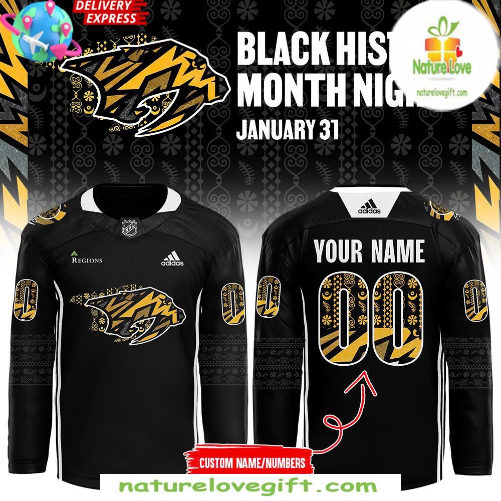 Order your Nashville Predators 2025 Black History Month Hockey Jersey at Nature Love Gift! ❤️