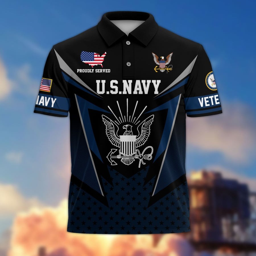 Navy Veteran Polo Shirt AOP – Honor & Service Design