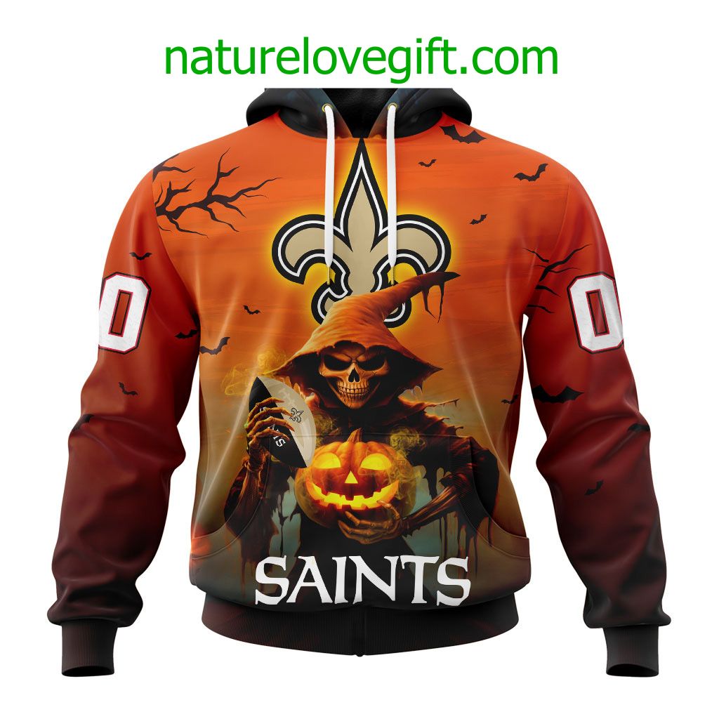 Order your New Orleans Saints NFL Grim Reaper Hoodie For Halloween Personalized Hoodies at Nature Love Gift! ❤️