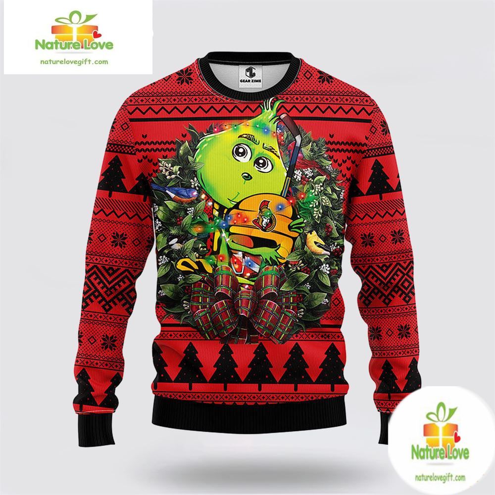 Ottawa Senators Grinch Ugly Christmas Sweater NHL Holiday