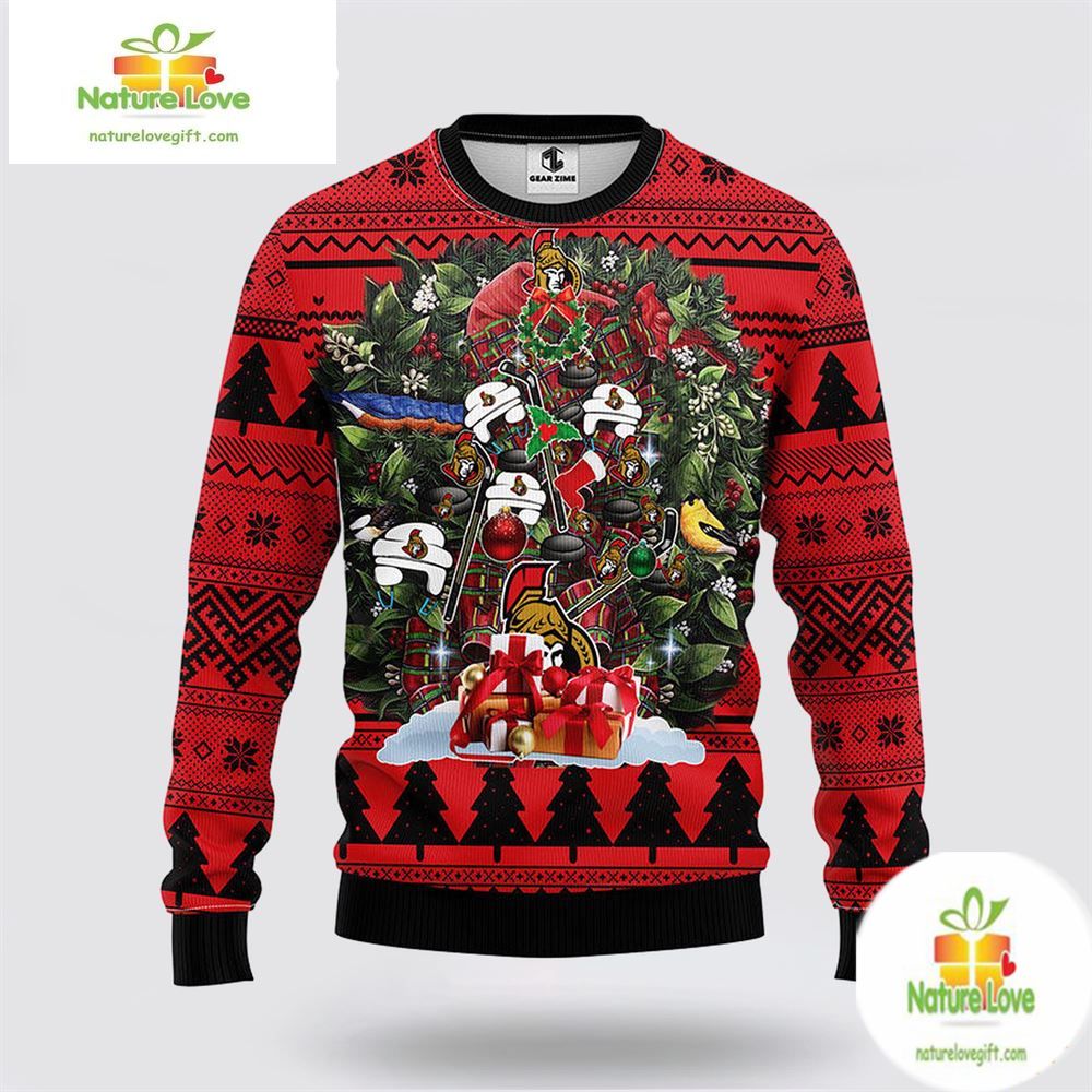 Ottawa Senators Ugly Christmas Sweater NHL Fleece Holiday Tree