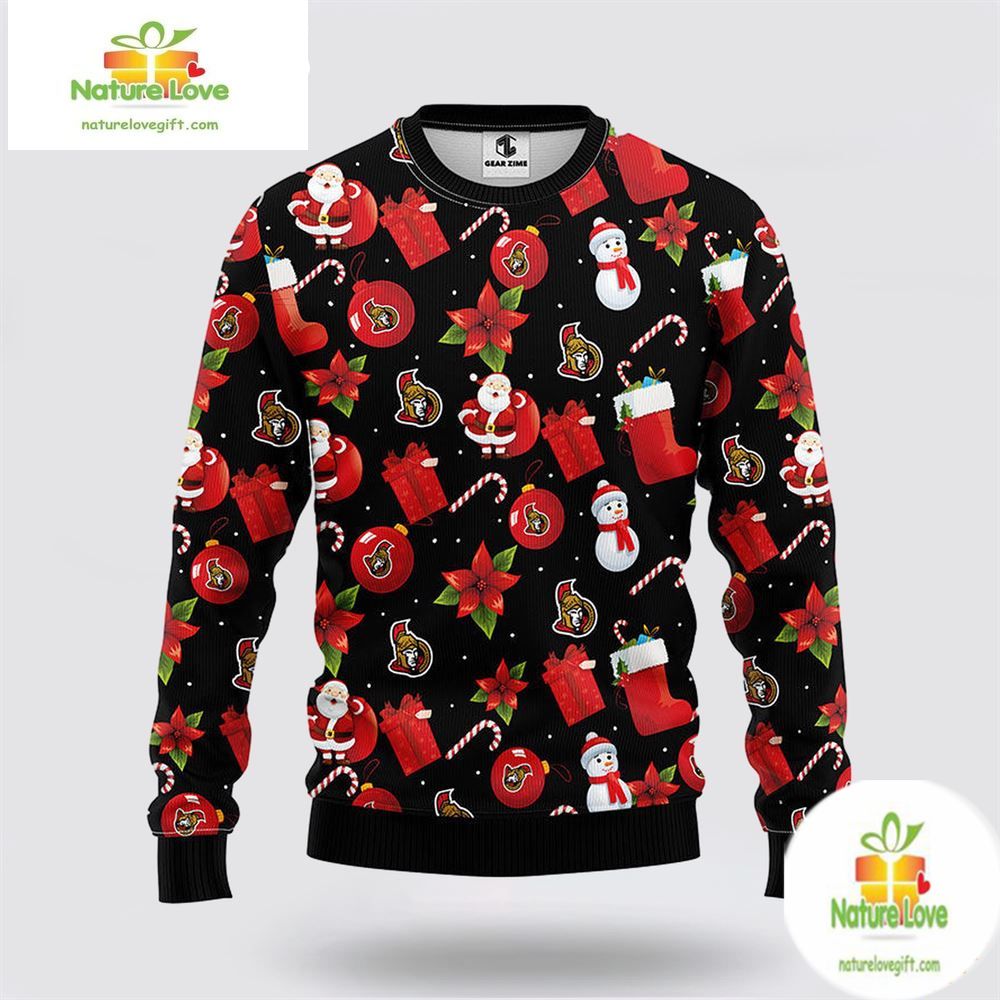 Ottawa Senators Ugly Christmas Sweater Santa Snowman NHL