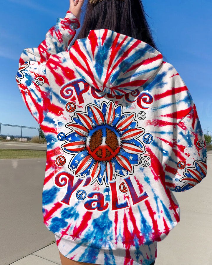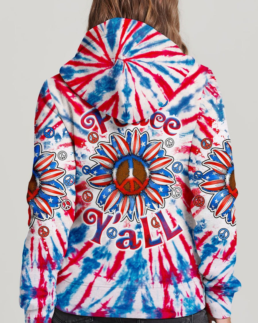 Peace Y’all Sunflower America Tie Dye 3D Hoodie