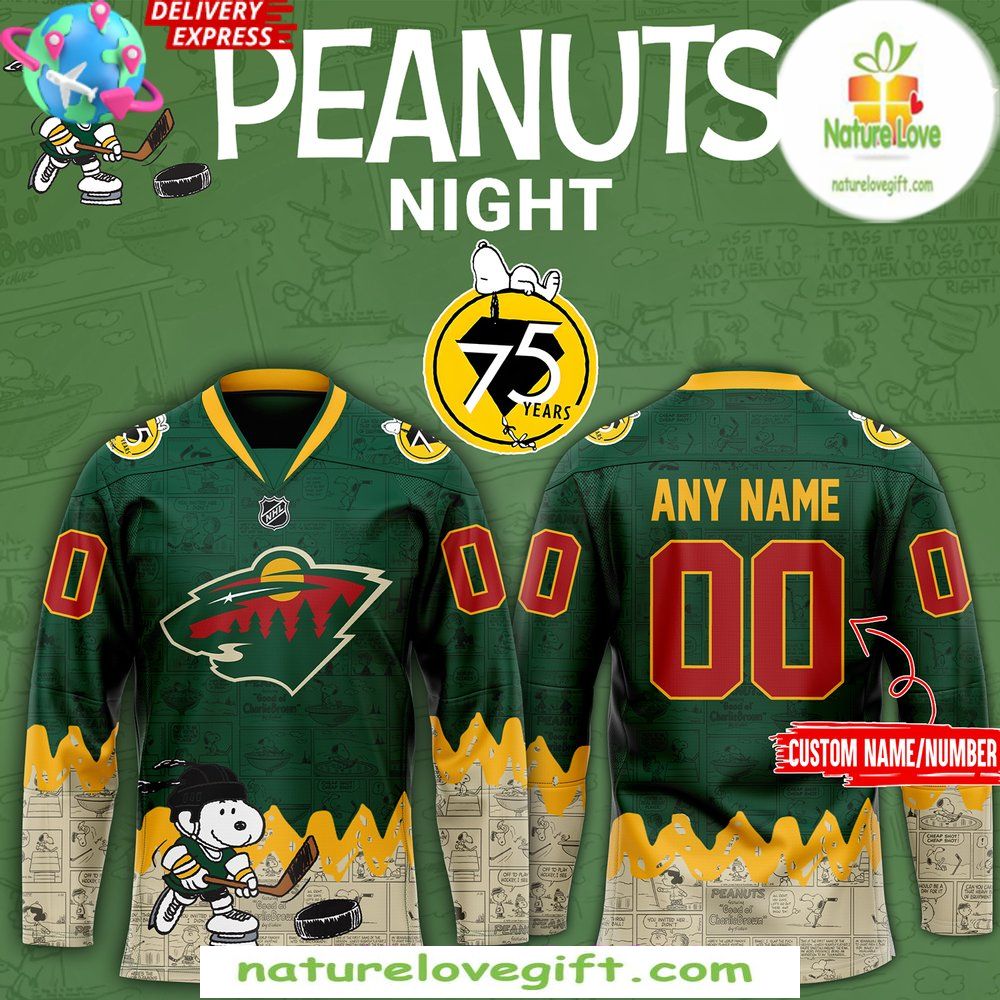 Order your Peanuts 75th Anniversary Minnesota Wild Hockey Jersey at Nature Love Gift! ❤️
