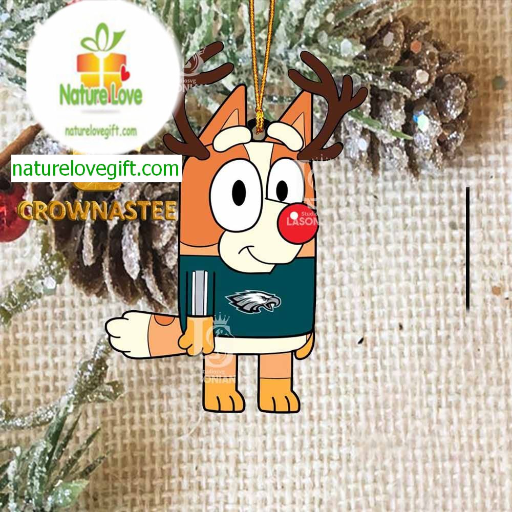 Order your Philadelphia Eagles Bluey Chilli Christmas Deer NFL Acrylic Christmas Tree Decoration Ornament at Nature Love Gift! ❤️