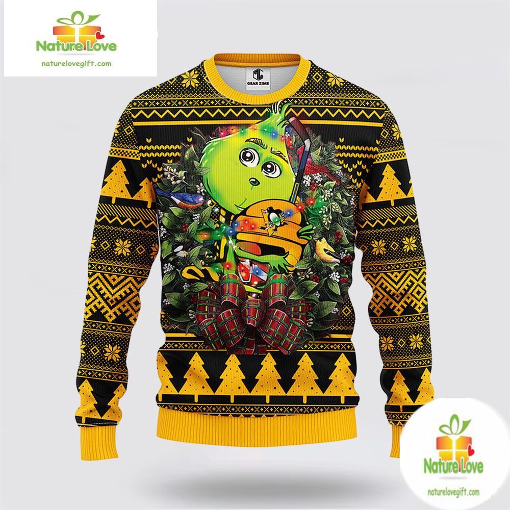 Pittsburgh Penguins Ugly Christmas Sweater Grinch Hug NHL