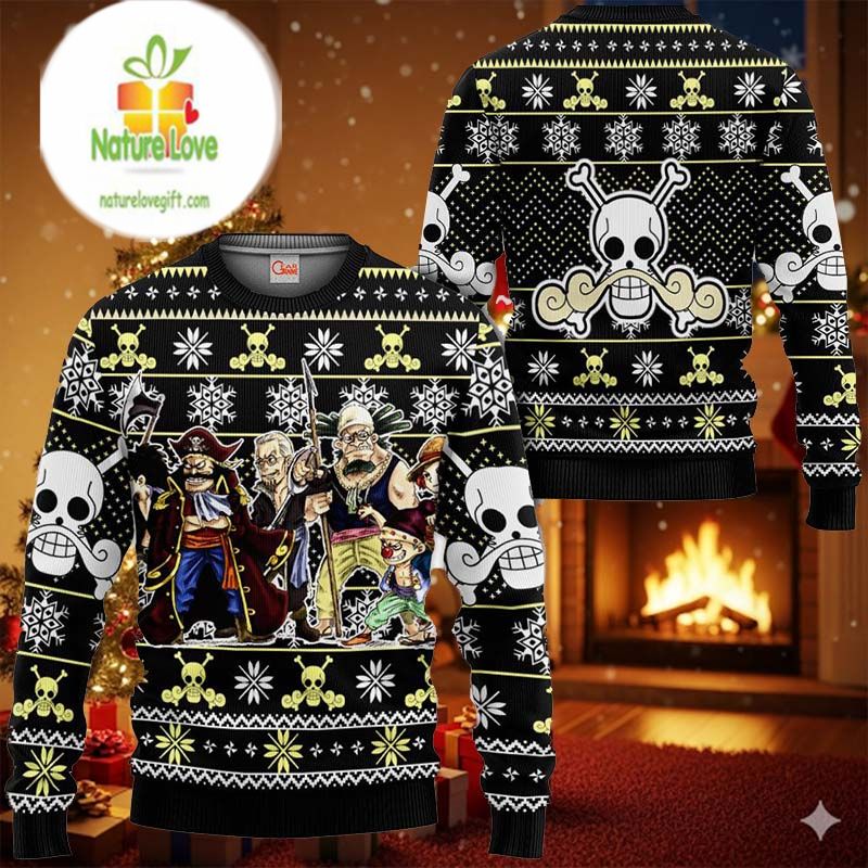 Roger Pirates Anime Xmas Gifts One Piece Ugly Christmas Sweater details: