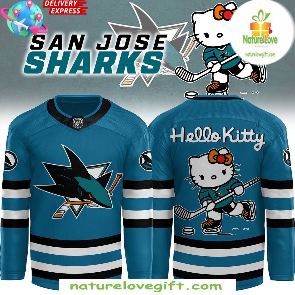 Order your San Jose Sharks Hello Kitty Hockey Jersey Special Edition at Nature Love Gift! ❤️
