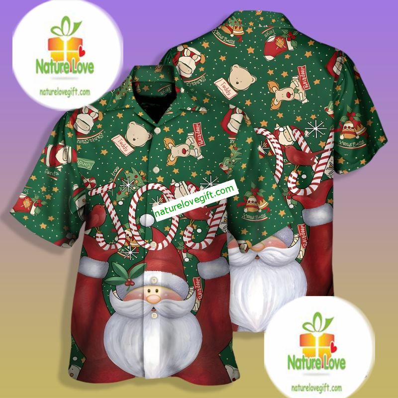 Order your Santa Claus Christmas Joy Candy Green Nice Hawaiian Shirts at Nature Love Gift! ❤️