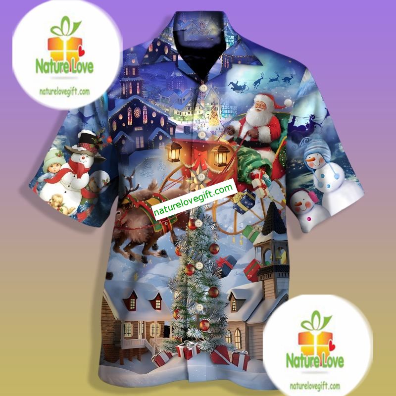 Order your Santa Claus Is Coming To Town Blue Cheap Hawaiian Shirts at Nature Love Gift! ❤️