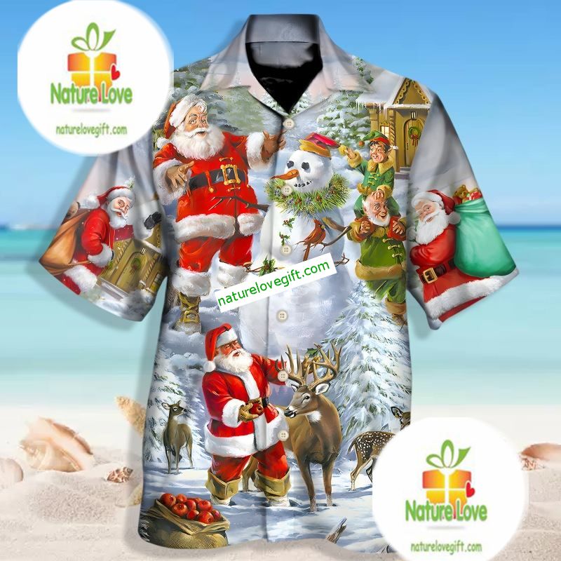 Order your Santa Claus Snowman Elf Happy Xmas Grey Tacky Hawaiian Shirt at Nature Love Gift! ❤️