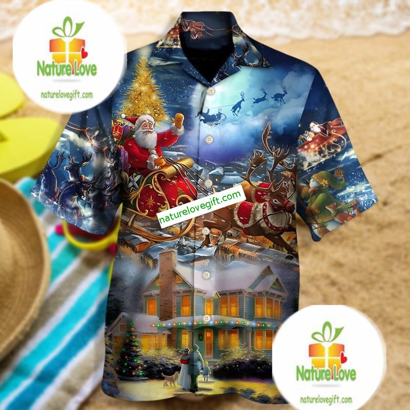 Santa Claus Snowman Night Blue Matching Hawaiian Shirts