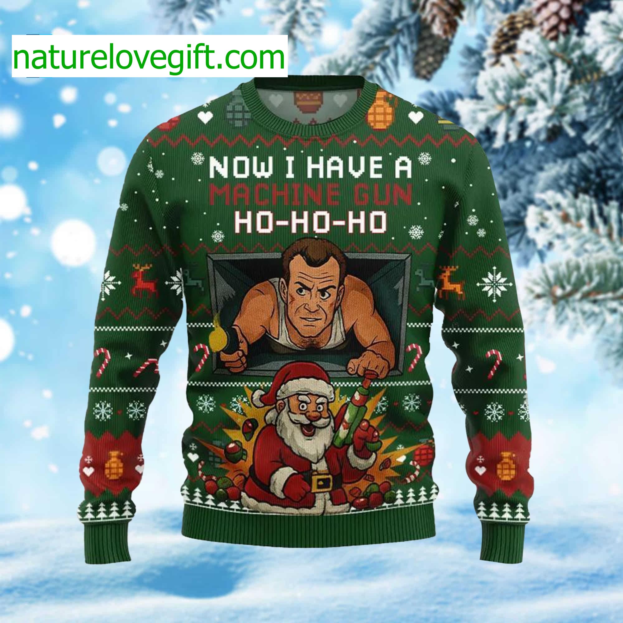 Santa Now I Have A Machine Gun Ho Ho Ho Ugly Christmas Sweater