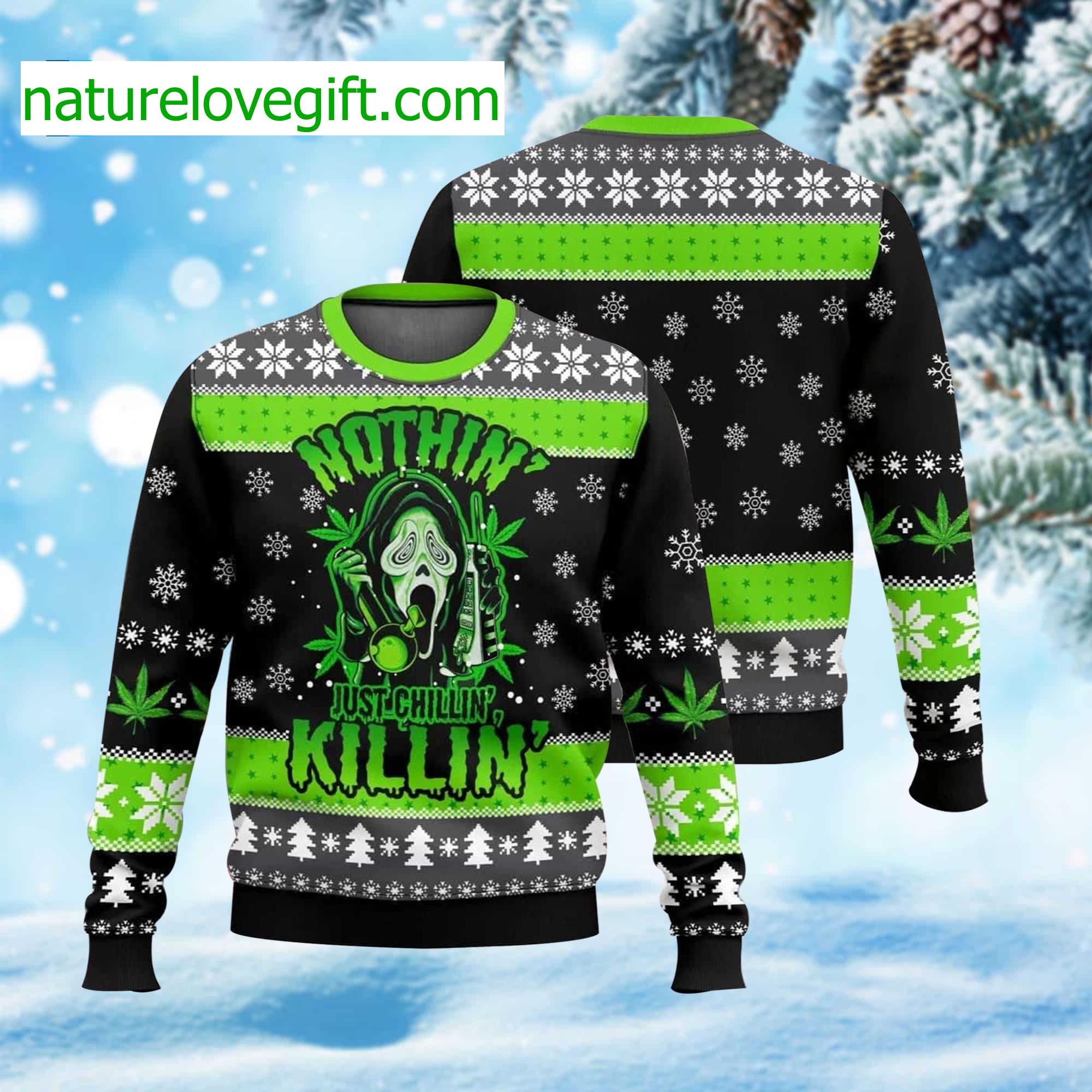 Scream Nothin' Just Chillin' Killin' Ugly Christmas Sweater details: