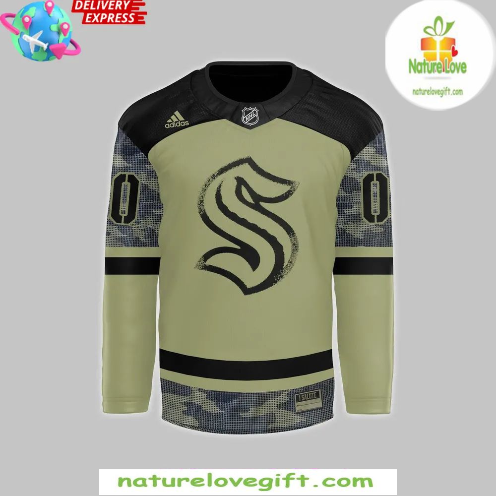 Order your Seattle Kraken 2025 Military Camo Hockey Jersey Adidas at Nature Love Gift! ❤️