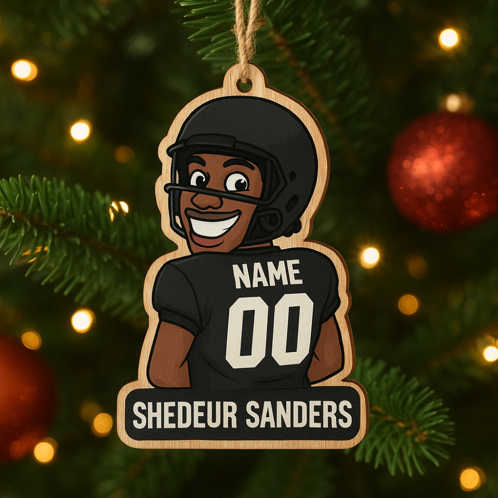 Shedeur Sanders Ornament Personalized Wooden Football Jersey Christmas Tree Decoration 2025