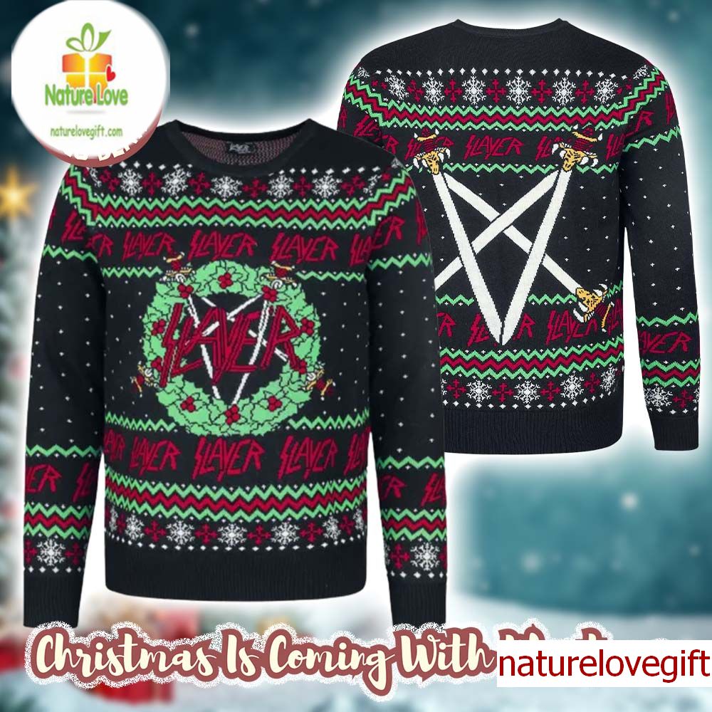 Slayer Thrash Metal Christmas Wreath Logo Holiday Christmas Ugly Sweater