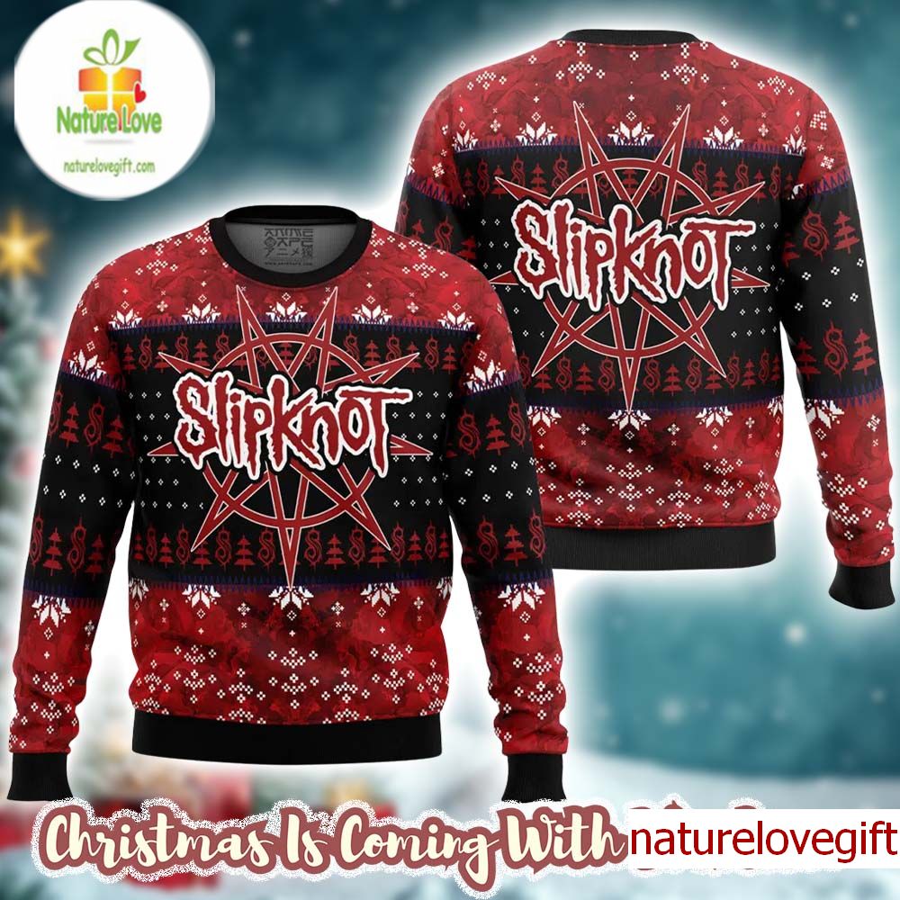 When the chill of winter sets in, this Slipknot Big Logo Night Pointed Star Tribal S Logo Pattern Knitted Black And Red Ugly Christmas Sweater becomes your go-to companion, blending warmth with a touch of rebellious flair. The striking black and red design, adorned with the iconic Slipknot logo, captures the essence of bold holiday spirit while paying homage to the heavy metal scene.Imagine cozying up by the fire, sipping hot cocoa, and sporting this ugly Christmas sweater at your next festive gathering. It's perfect for those who want to express their love for music while embracing the fun of the season. With its intricate tribal patterns and unique silhouette, this piece stands out in any crowd, making it an ideal choice for holiday parties, game day, or simply lounging at home.Don't miss your chance to rock this one-of-a-kind sweater and show your true colors this holiday season!