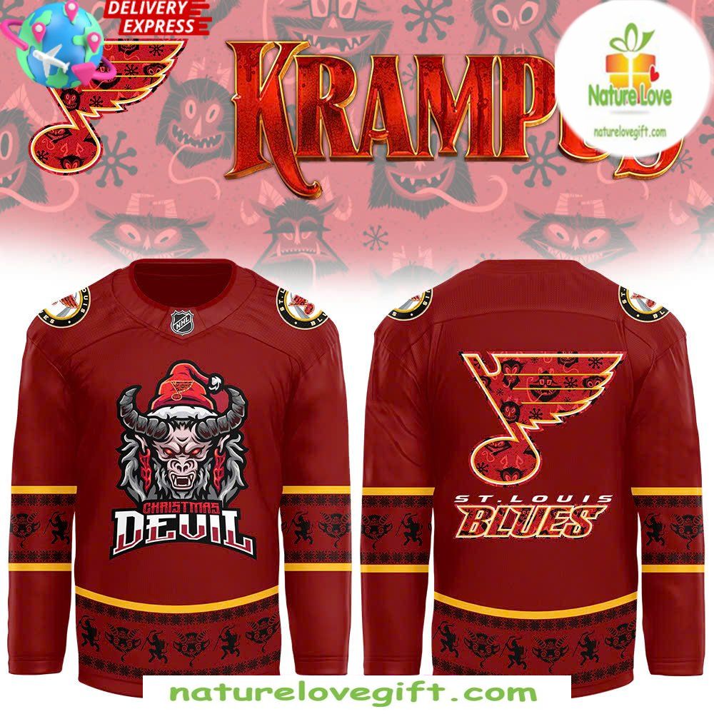 Order your St Louis Blues Krampus Christmas Hockey Jersey NHL Holiday at Nature Love Gift! ❤️