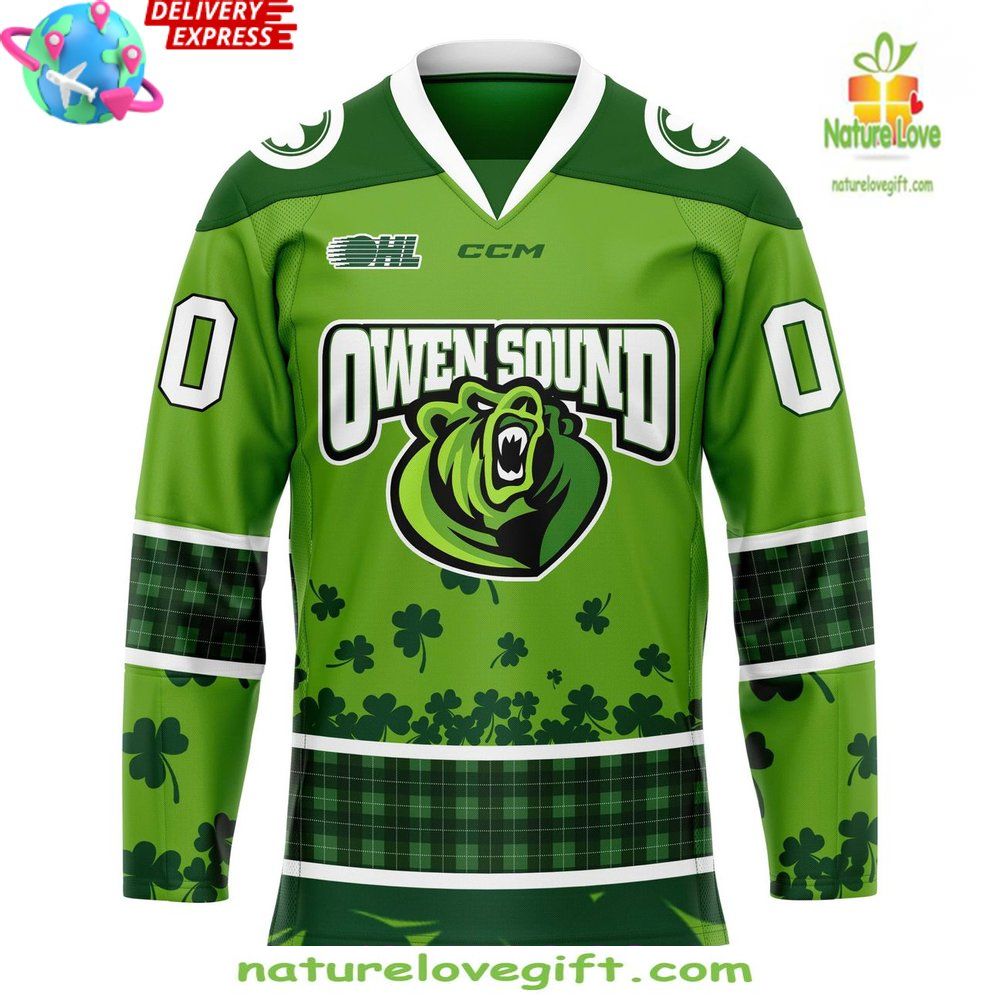 Order your St Patricks Day 2025 Owen Sound Attack Hockey Jersey at Nature Love Gift! ❤️