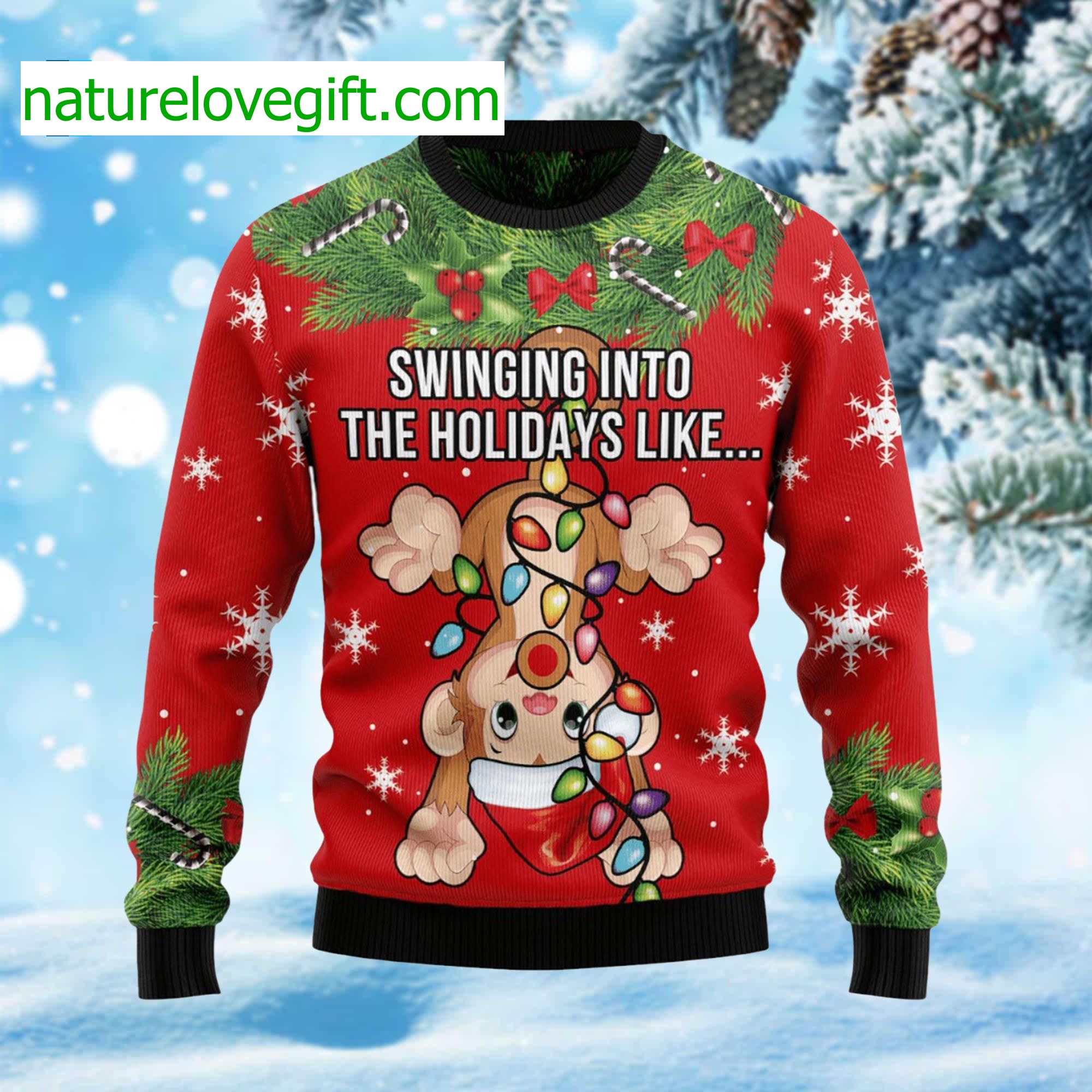 Swinging Into The Holidays Like Monkey Ugly Christmas Sweater details: