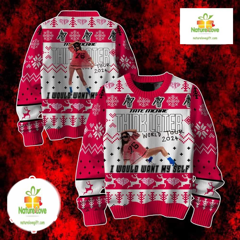 Wrap yourself in the festive spirit with the Tate McRae Think Later Tour 2024 Ugly Christmas Sweater. This whimsical piece combines holiday cheer and a dash of nostalgia, featuring playful designs that spark joy and laughter. Imagine cozy nights by the fire, sipping hot cocoa, while donning this unique sweater that perfectly blends bold style with a hint of nerd humor.Crafted for those who appreciate a touch of fun during the holiday season, this sweater is the ideal companion for game day gatherings, office parties, or festive family get-togethers. The soft fabric ensures comfort, while the eye-catching graphics celebrate Tate McRae's vibrant artistry, making it a must-have for fans and fashionistas alike.Don’t miss the chance to stand out this holiday season—grab your ugly Christmas sweater today and make unforgettable memories!