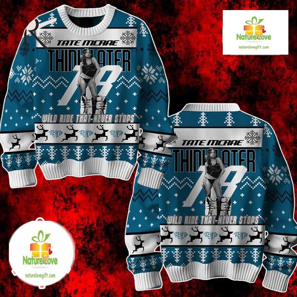 Tate McRae Ugly Christmas Sweater Think Later Holiday Outfit details: