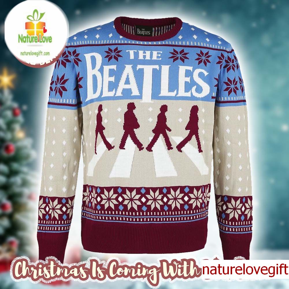 The Beatles Abbey Road Signature Aston Villa Colorway Holiday Ugly Christmas Sweater details: