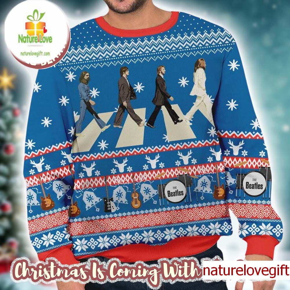 The Beatles Abbey Road Xmas Gifts For Fan 2025 Holiday Ugly Christmas Sweater details: