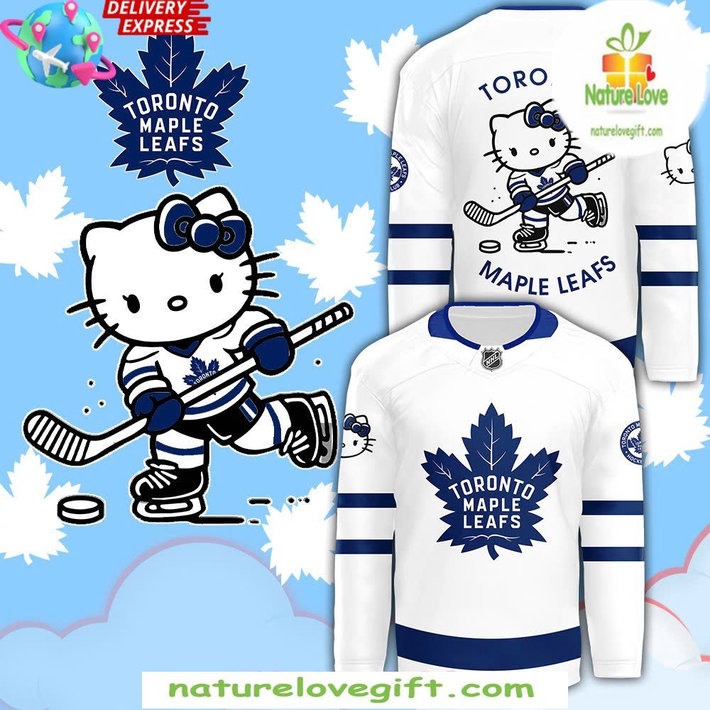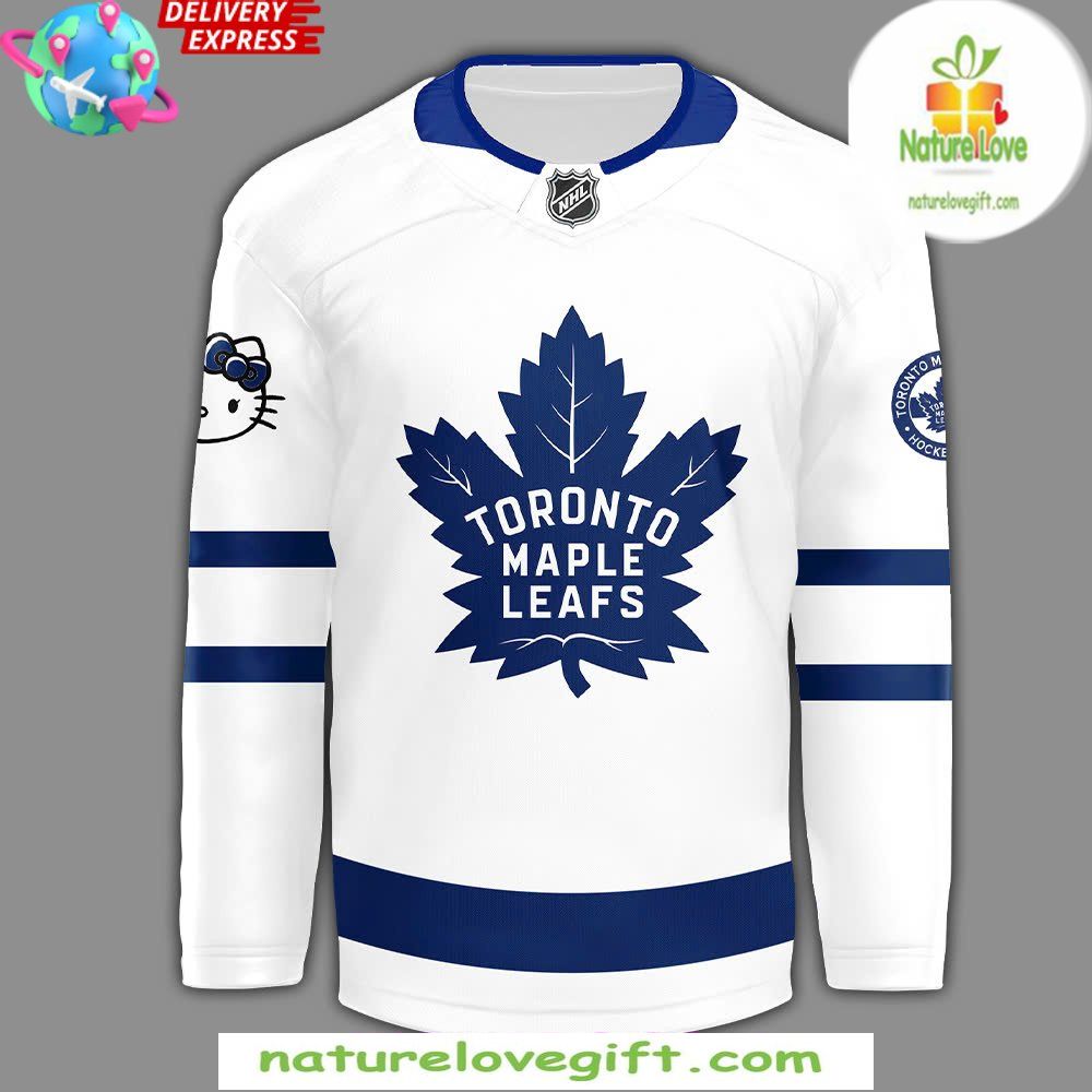 Order your Toronto Maple Leafs Hello Kitty 50th Anniversary White Hockey Jersey at Nature Love Gift! ❤️