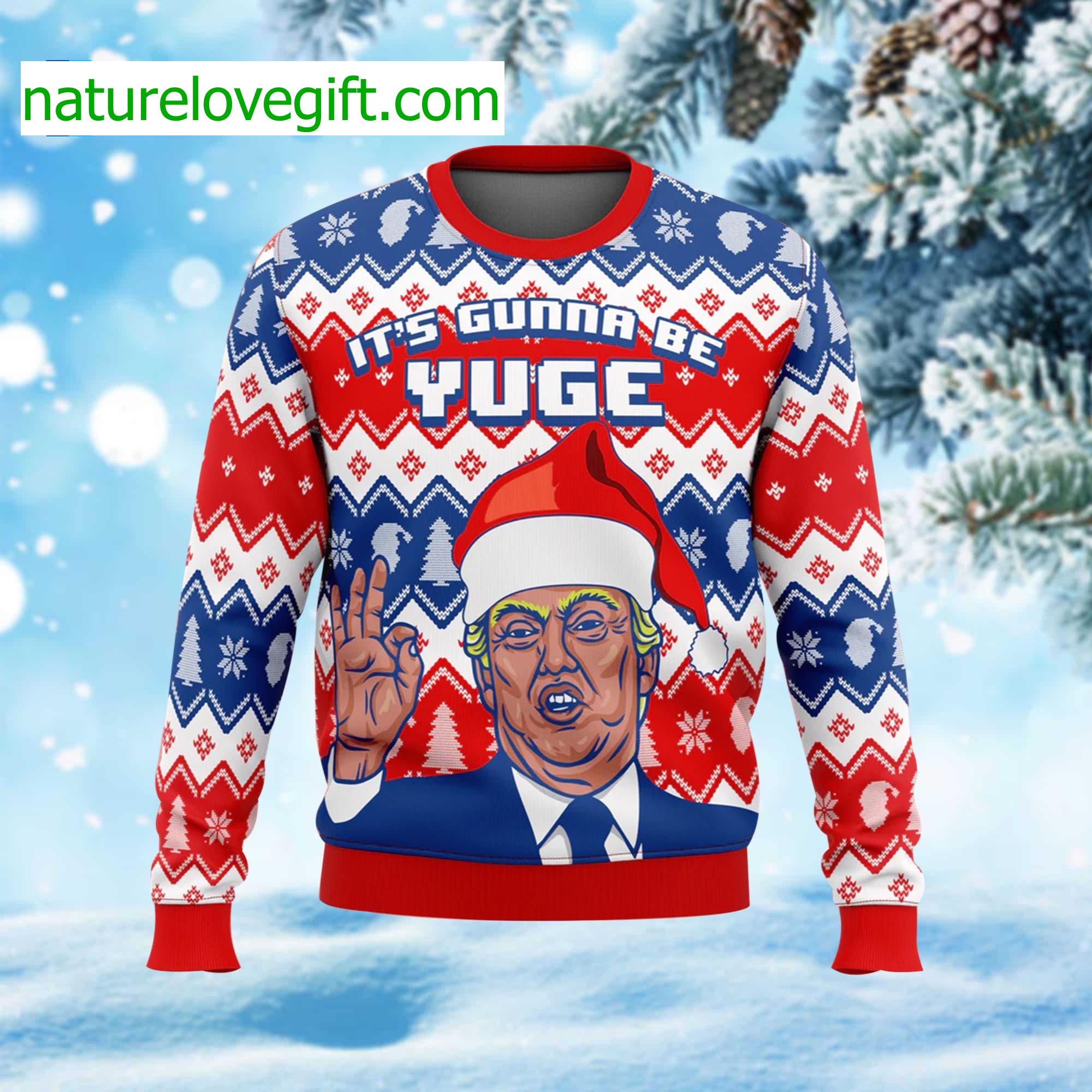 Trump It's Gunna Be Yuge Ugly Christmas Sweater details: