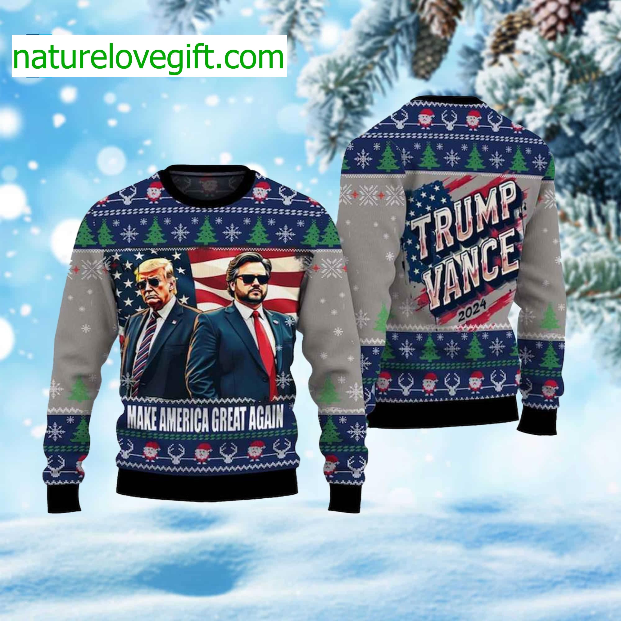 Trump Vance Make America Great Again 2024 Ugly Christmas Sweater details: