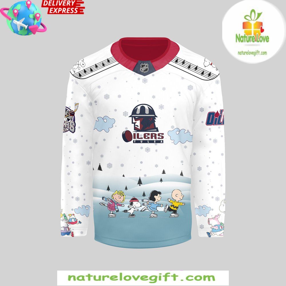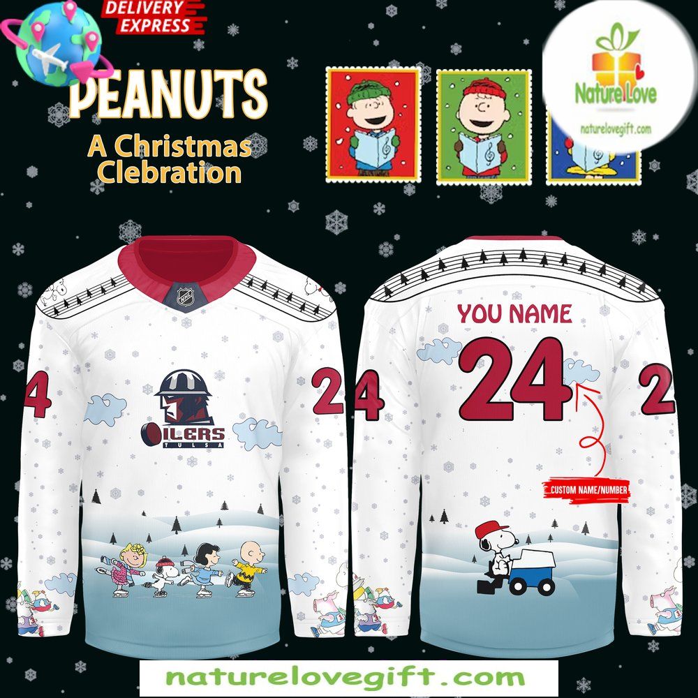 Tulsa Oilers ECHL 2025 Christmas Hockey Jersey Peanuts details: