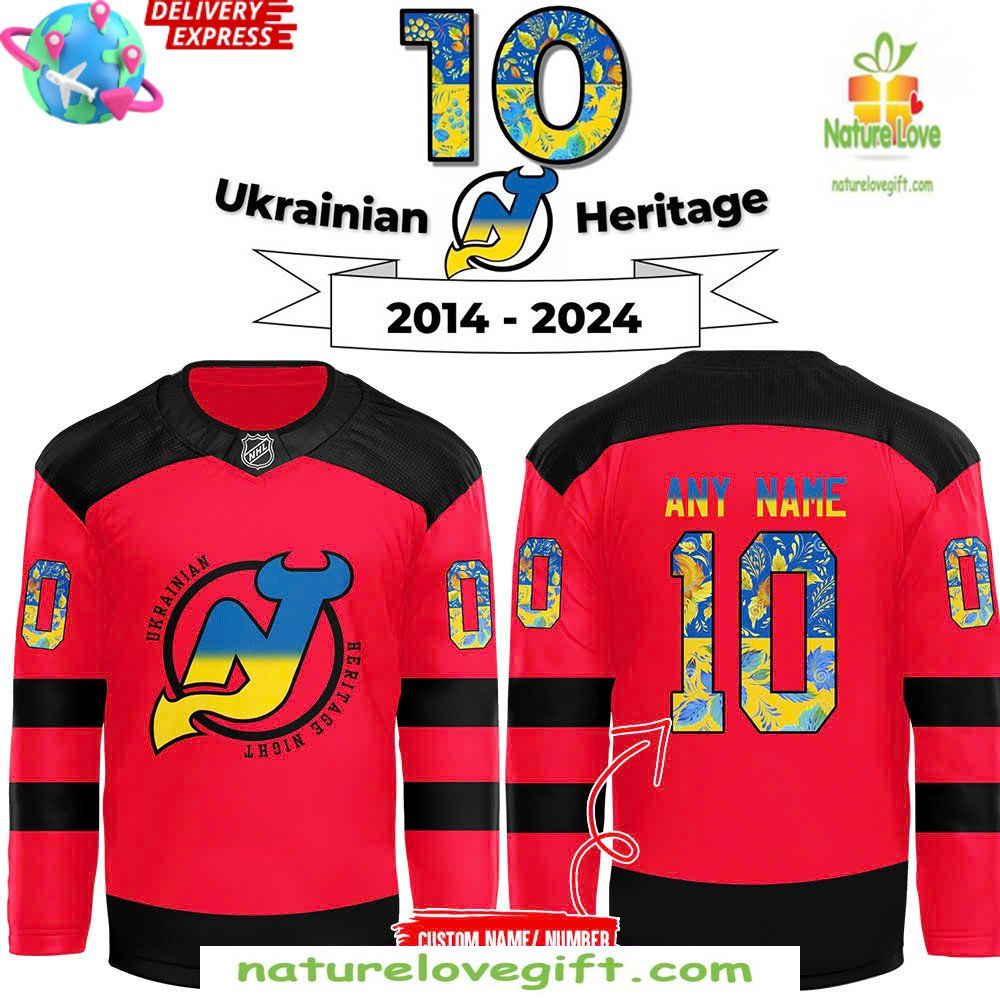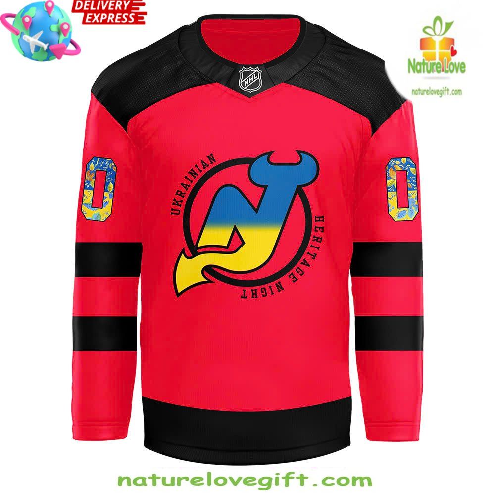Order your Ukrainian Heritage Jersey New Jersey Devils 2025 Hockey at Nature Love Gift! ❤️