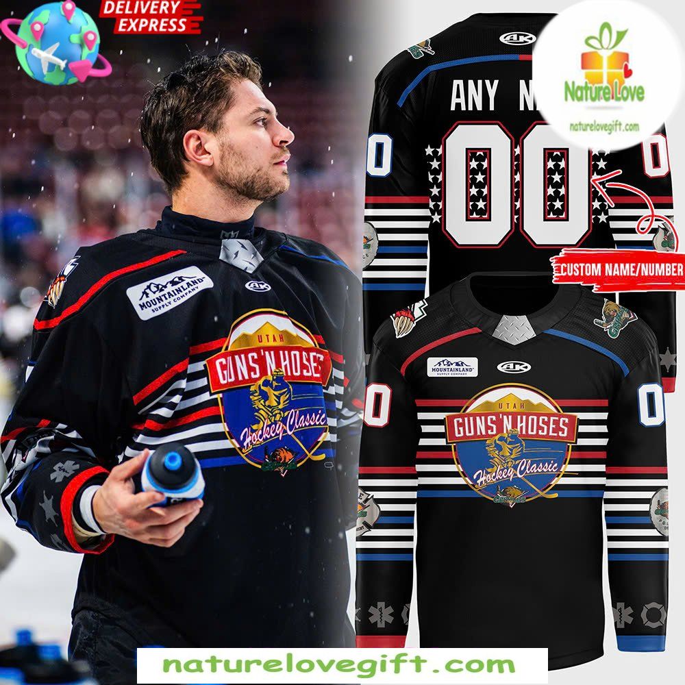 Order your Utah Grizzlies 2025 Guns And Hoses Hockey Jersey at Nature Love Gift! ❤️
